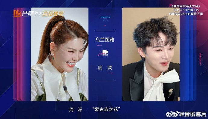1. “贴脸开大”式玩梗:周深一接通视频便即兴清唱乌兰图雅代表作《蒙古族之花》,甚至模仿她标志性的“ABB式唱腔”(如“火辣辣的情歌”),用幽默致敬对方风格。乌兰图雅大笑回应,还提议组“戈壁CP”,二人互怼被网友称为“梗王对决”。