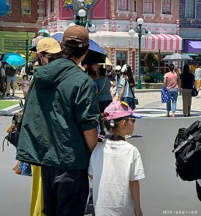 女儿小小糖扎麻花辫、戴粉色帽子,身高已近罗晋肩膀,侧脸神似唐嫣。夫妻二人佩戴情侣帽,罗晋紧牵女儿的手,唐嫣轻捏女儿辫子,三人贴耳说笑,自然流露亲密感。