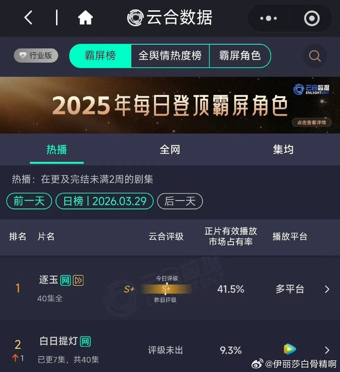 迪丽热巴 陈飞宇#白日提灯#次日云合9.3%,预估播放量2000w➕
