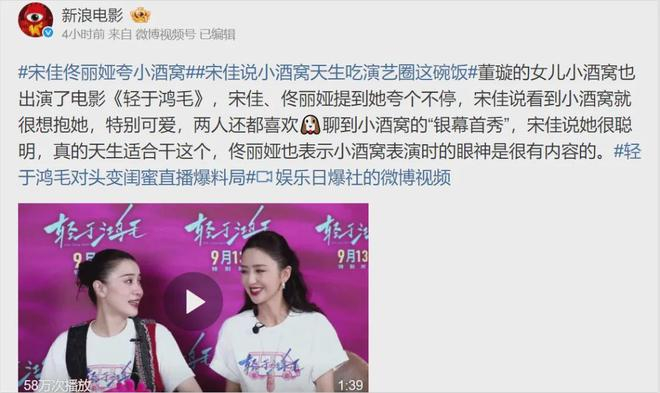 最近,小酒窝还首次触电,参演电影《轻于鸿毛》,在片中与宋佳和佟丽娅搭戏。