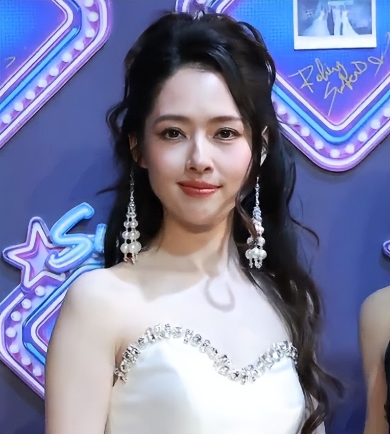 她披散着及腰的黑长直,穿了一身米白色缎面长裙,裙摆垂坠感很强,本是温柔大气的款式,可镜头里的她却显得格外臃肿。