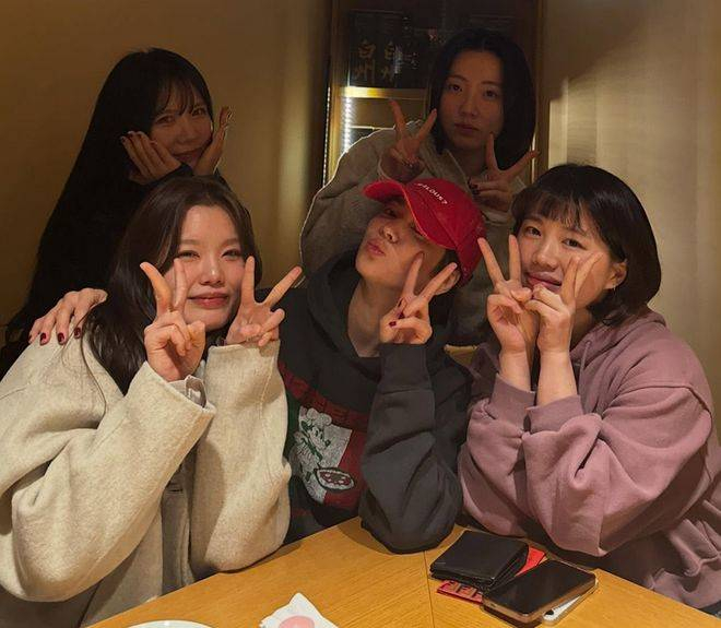 此外,宋慧乔还分享了与几位女同事的合影。她们围坐在餐桌旁,互相交谈着,笑声充满了整个画面。那种无拘无束的亲密感,仿佛能让人感受到她们之间的深厚友谊。大家的笑容都如此自然,眼中闪烁着幸福的光芒,气氛轻松愉悦。