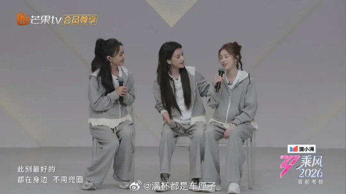 三人分别贡献差异化的美学表达:孙怡的甜美灵动、张慧雯的清新温婉、赵子琪的知性优雅,在镜头切换中形成视觉层次。合照中素颜扛住原相机的真实状态,与歌词"不用兜圈"的真诚主题形成互文,打破综艺舞台的精致面具。