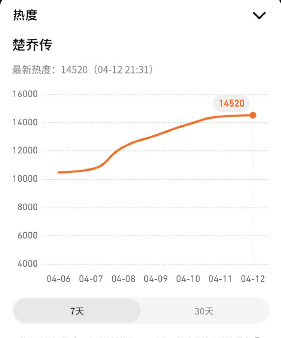 2026年4月,开播九年的古装剧《楚乔传》突然逆势翻红,空降腾讯视频热播总榜第3位、爱奇艺总榜第4位,单日播放量环比暴涨300%,成为视频平台榜单中唯一杀入前十的“老剧”,掀起全网怀旧热潮。