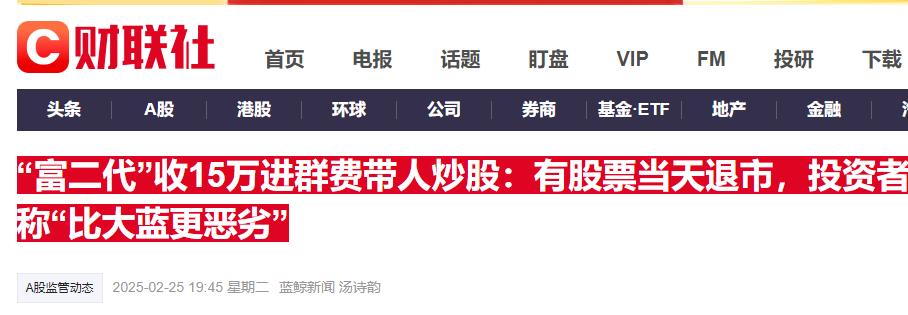 财联社|“富二代”收15万进群费带人炒股:有股票当天退市,投资者称“比大蓝更恶劣”