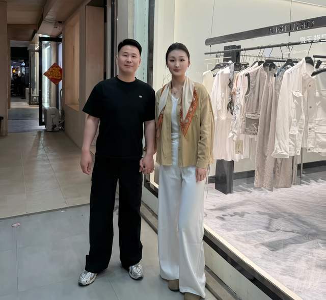 曝光的画面中,陈亚男与老公郭新朋站在自家服装店门口,自然的十指相扣。细看之下可以发现,郭新朋梳着偏分,身材略微有些壮实,但皮肤状态却非常好,一看就不是那种出大力的人,面对镜头也是自然流露。
