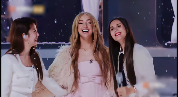 一公舞台和法国姐姐、郭书瑶合作了《留不住的雪》,三人的深情演唱,在众多唱跳舞台中清新脱俗。