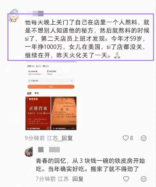 最近的网络热搜上,一个令人唏嘘的消息引发了广泛关注:南京知名网红店“小潘记鸭血粉丝”老板潘林虎因心血管疾病去世,年仅59岁,作为一个原本从未打算写吃瓜的普通网友,看到这则新闻后,内心不禁为这位“鸭血粉丝王”所扮演的“苦情老板”而深深震撼,潘林虎用一生换来了千万的身家,却在年少时逝去,令人不禁感叹:为何如此拼搏?为何在追求财富的道路上挥洒光阴?这般悲剧,是否也提醒着我们:在追求“成功”时,是否也该握住“健康”这份宝贵的财富?,### 一、卷与躺平:潘林虎的“苦情”与“无奈”,潘林虎的“鸭血粉丝”从一个小小的摊位,逐渐长大为南京地界的“网红”,销量第一,品牌影响力可谓是“天下风流人物”,这份“成功”的背后,却隐藏着一颗不为人知的心灵,作为一个老派的做人,潘林虎从不愿向任何人求助,即便是面对严重的高血压问题,也坚持独自熬料、独自打理店铺,这种“卷”的精神,令人敬佩,却也令人心疼。,在商业竞争日益激烈的今天,潘林虎的“苦情”不正是对“躺平”最好的诠释吗?他用一生换来的财富,是否真的值得?他在商海中拼搏的背后,是否也该有人在意他的身心健康?毕竟,身体是革命的本钱,若是为了生意而将身体耗尽,这般“奋斗”究竟算不算“成功”?,### 二、老板的悲剧:为何拼命?为何坚持?,潘林虎去世的直接原因是长期的高血压引发的心脏病,这种疾病的成因,很大程度上与他一味为店铺熬夜、独自熬料有关,据知情人士透露,潘林虎在店里熬料的时间可达16小时,甚至连病休都没有,这种“拼命”精神,虽然让店铺一路顺风,但也让人不禁怀疑:为何不选择为身体健康“投资”一部分?,更令人唏嘘的是,潘林虎事先知道自己的身体状况,却依然选择了“带病坚持”,这背后折射出的,是现代商人面对“成功”与“健康”的两难抉择,商业的“胜利”往往伴随着身心的“失败”,而潘林虎的悲剧,恰恰是这种现实的生动写照。,### 三、追求财富的意义:潘林虎的遗言,潘林虎用短短的几十年时间,从一个“卤鸭”打交道的小人物,成长为千万身家的“老板”,这份财富的背后,是他对美食的执着追求,是对生活的热爱,也是对“鸭血粉丝”这一美食文化的传承与创新,当他站在财富的顶峰时,却倒在了身体的废墟上,这般“悲剧”,是否也在向我们传递某种“遗言”?,潘林虎的故事告诉我们:财富的意义在于让生活更美好,而不是让生活失去意义,那些“挣得太多”的财富,若无法让你拥有健康、幸福的生活,那么这些财富也不过是“纸醉金”的幻觉,真正的“成功”,应该是让你在追求财富的同时,也能守护好自己的健康。,### 四、潘林虎的“后续”:对年轻人的深刻启示,作为一个成功的“老板”,潘林虎的去世不仅让人感叹“有多大的责任”,更让人思考:年轻人在追求“成功”的道路上,是否也该多一些自我反思?在商业竞争日益激烈的今天,如何在追求财富的同时,守护好自己的身心健康?这或许是潘林虎留给我们最宝贵的财富。,潘林虎的故事,是否也在提醒我们:无论身处何种行业,在追求“成功”的道路上,都要记住“健康”二字,毕竟,身体是革命的本钱,而健康才是最重要的“财富”,也许,潘林虎的去世,是对我们的一剂“警醒”:在追求财富的道路上,别忘了对自己的“健康”负责。,### 五、最后的话:为何潘林虎“值得同情”?,潘林虎的去世,让人既敬佩他的拼搏精神,又为他的悲剧感到惋惜,他的“成功”是别人羡慕的,但他的“失败”却让人心酸,作为一个普通人,我们或许无法像潘林虎那样“卷”,但我们可以从他的故事中汲取教训:在追求财富的同时,别忘了对自己的健康负责。,潘林虎的事迹,既是一曲“奋斗者”的挽歌,也是一面“健康”的镜子,它提醒我们:无论身处何种行业,健康才是最重要的“成功因素”,让我们在追求财富的道路上,身体健康才是革命的本钱,健康的生活才是最幸福的财富。## 潘林虎:千万财富下的商业悲剧,高血压夺走年华,在南京这座古都的街头巷尾,"小潘记鸭血粉丝"的店面如同一颗璀璨的明珠,吸引着无数饭客驻足,这个年仅59岁的男人,创造了一个让人惊叹的商业奇迹:年收入近千万的鸭血粉丝店,"清汤路线"的创新在短视频时代点燃了火焰,甚至超越了当地知名品牌的销量。,这个看似光鲜的商业成功背后,却藏着一个令人唏嘘的真相,潘林虎的不幸去世,揭开了一个关于现代商业社会中"财富与健康"博弈的悲剧篇章,一个追求财富的男人,在攀登商业高峰的过程中,逐渐失去了最宝贵的健康。,作为一个普通人,潘林虎的故事折射出当代社会的集体困境,我们都在追逐财富的光芒,却往往忽视了维系生命的重量,那些看似辉煌的商业成就,往往是以健康的代价换来的,就像潘林虎,他为了店铺的运营,不惜在熬料、处理后事之余继续坚持工作,直到身体承受不住。,这不禁让人反思:潘林虎创造的财富究竟有多少分量?那些被分给员工的钱,到底是为了什么?是为了享受生活,还是为了继续追逐财富的永远大约?,在这个商业社会中,我们常常陷入一种畸形的价值取向,人们追求财富,却往往忽视了体魄的重要性,潘林虎的故事提醒我们:真正的成功,不应该以失去健康为代价,那些看似辉煌的商业成就,若以健康为代价,反而成为了最大的遗憾。,潘林虎的去世,不仅是一个个体的悲剧,更是整个时代的缩影,在追逐财富的道路上,我