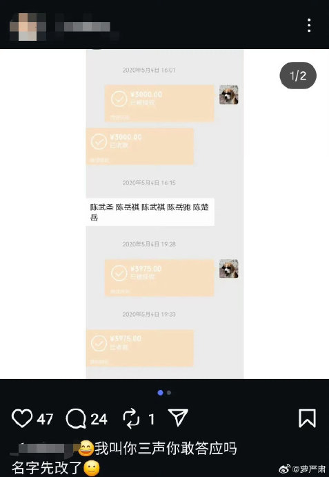 2026年3月底,演员陈牧驰(本名陈海亮)官宣与歌手陈冰结婚生子后,其前妻罗晨通过社交媒体发布聊天记录及转账凭证,要求陈牧驰停用艺名“陈牧驰”并改回原名。罗晨主张该艺名系其2020年婚姻存续期间花费近7000元(含3000元、3975元两笔付款)委托专业人士定制,候选方案包括“陈牧驰”“陈牧塬”等,最终选定现用名。她强调“名字先改了”,要求男方停止使用以“划清界限”。