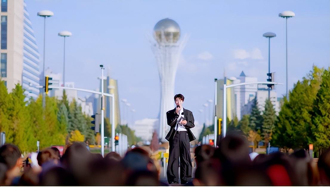 最后一站的见证人,换成了蔡国庆。这位首次来哈萨克斯坦的“老牌歌手”,站在阿斯塔纳的中轴线上感慨:“如果说建筑是凝固的音乐,那阿斯塔纳正在谱写一曲关于未来的交响。”