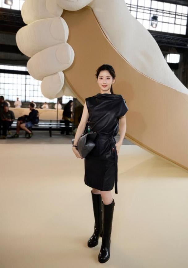 配饰上,她只拿了一个同色系的皮质手包,戴上温柔的珍珠耳钉,看起来低调贵气,把皮质的硬朗和女性的柔美平衡得刚刚好,不同于红毯上的华丽,这套造型更偏向职场大女主的风格,让人看到了她褪去网红标签后,作为商业女性的专业与气场。