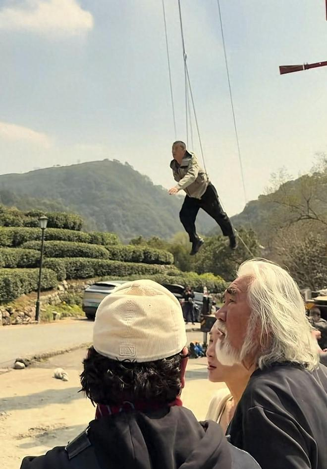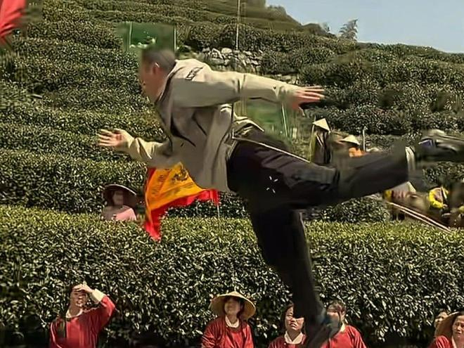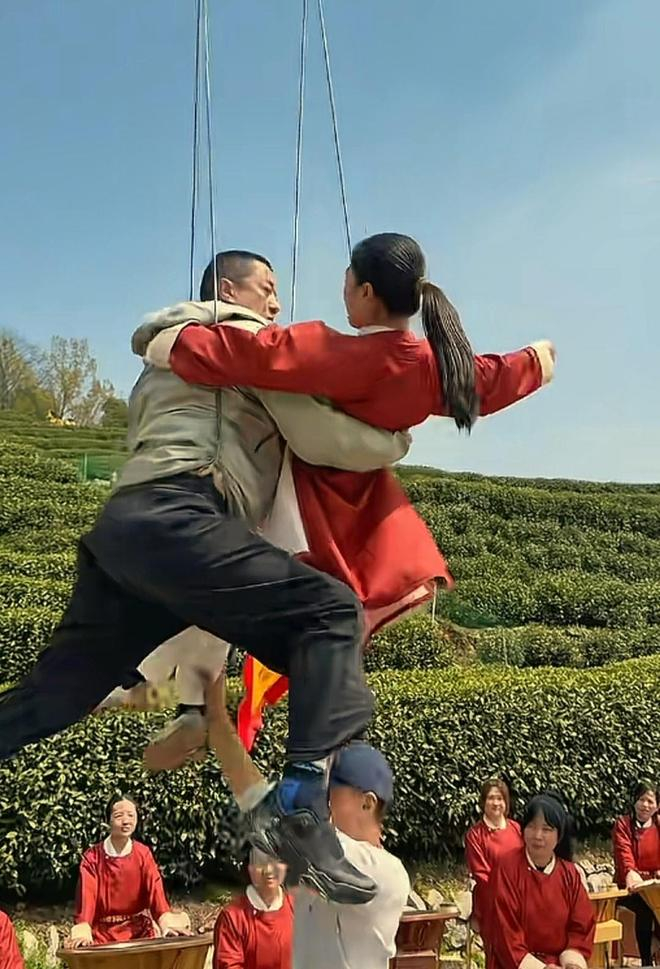 其实并非如此,最近,李亚鹏现身杭州茶园,拍摄的是宣传视频,画面中他吊着威亚凌空飞起,怀中还“抱着”身着红衣的茶农,动作潇洒。