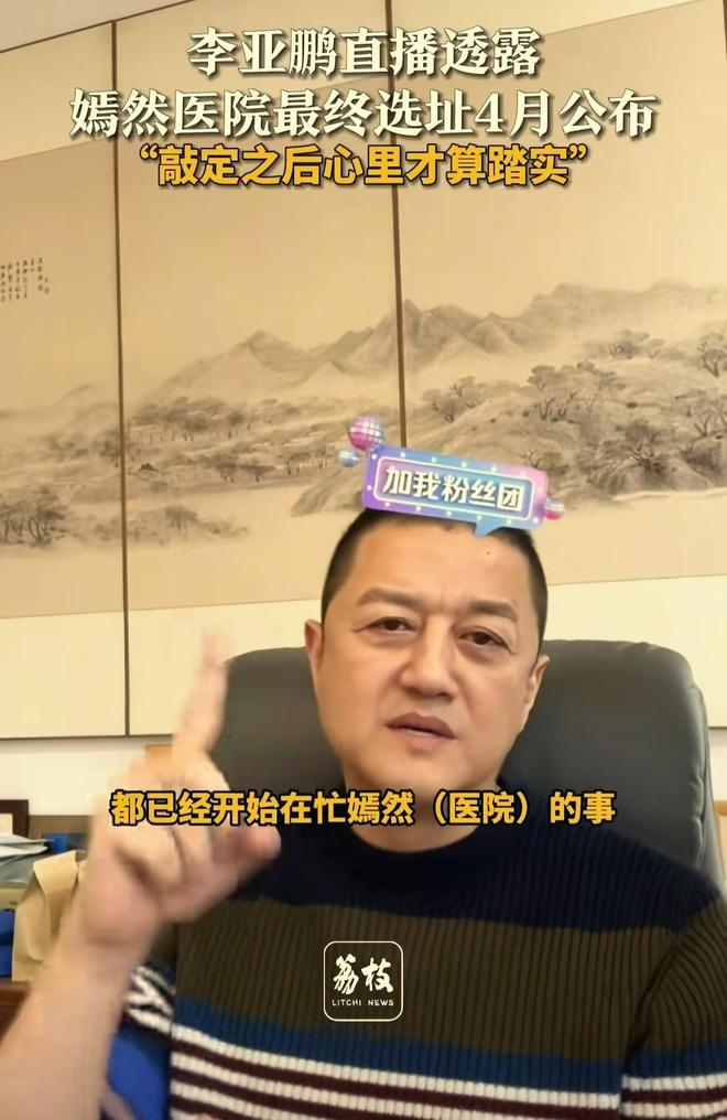 3月20日直播中,他透露自去年底便全身心投入嫣然医院选址筹备,4月将公布最终选址,只为让这家救治过超11000例唇腭裂患儿的非营利医院能延续运营。