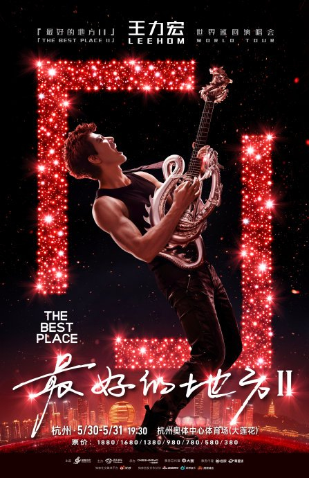王力宏"最好的地方II"世界巡回演唱会首站杭州今日正式官宣,将于5月30日至31日在杭州奥体中心体育场连唱两场,票价分1880元至380元七档。