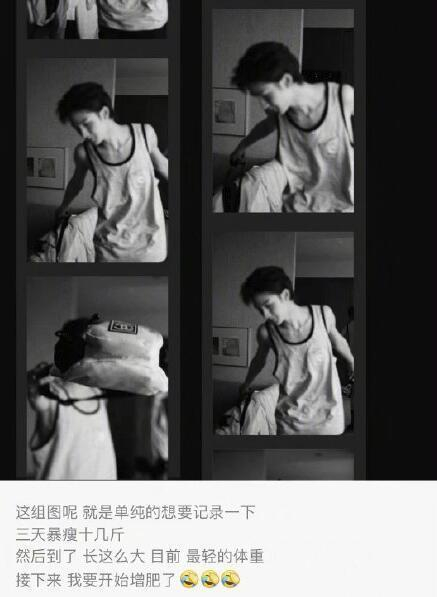 不过对减肥知识有一定了解的人就知道,他这并不是真真地瘦下来,体重降得太快,一般都是缺水导致的,减的体重很大一部分都是身体的水分!可能是因为最近他在拍古装戏,加上天气炎热,导致严重脱水,才使自己的体重降得这么快!当恢复正常的补水,体重会慢慢恢复正常!虽然是这样,但是为了自己的健康,还是不建议这么拼命,毕竟身体才是革命的本钱,一旦累垮就非常麻烦!