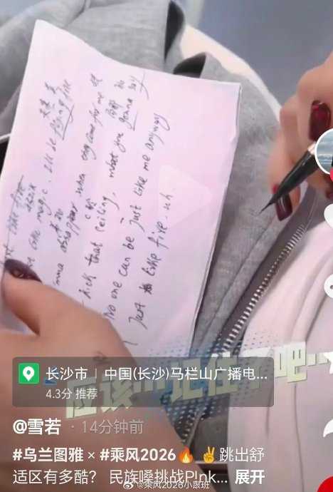 当蒙古族歌手乌兰图雅在《乘风2026》的排练手稿上,用“帮宁”标注“burning”、“爱你胃”对应“anyway”时,这张写满中文谐音的“涂鸦单词表”瞬间点燃了千万网友的记忆开关,成为全网热议的“人类驯服英语现场实录”。