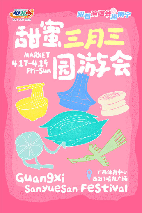 - 市集文化展演:场馆外设置2600㎡主题市集,非遗传承人演示壮族绣球制作,横州茉莉花茶、钟鼓楼雪糕等特色产品通过“音乐+美食”场景触达年轻群体