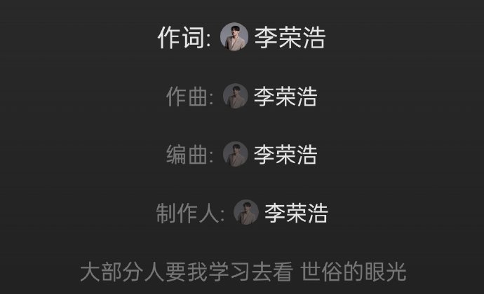 创作者身份遭质疑:声明中“同样作为创作者”的表述引发嘲讽,因其缺乏代表性原创作品,被指“拉低李荣浩身份”;