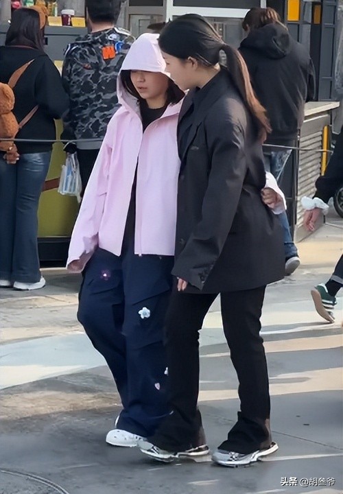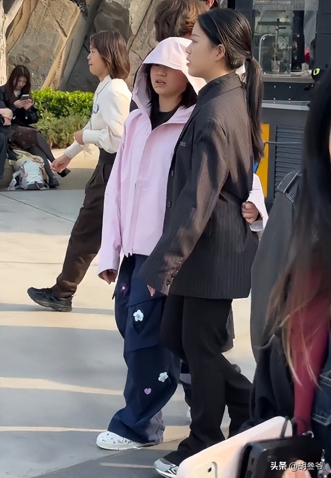 在曝光的画面中,全红婵身穿粉色冲锋衣内搭黑色短袖,宽松牛仔裤配运动鞋。