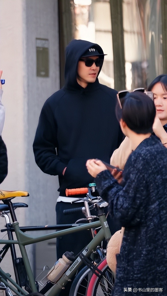 被路人偶遇抓拍的画面里,阮经天一身休闲打扮,黑色针织帽搭配墨镜,军绿色皮衣衬得他身形挺拔,184厘米的身高自带气场。
