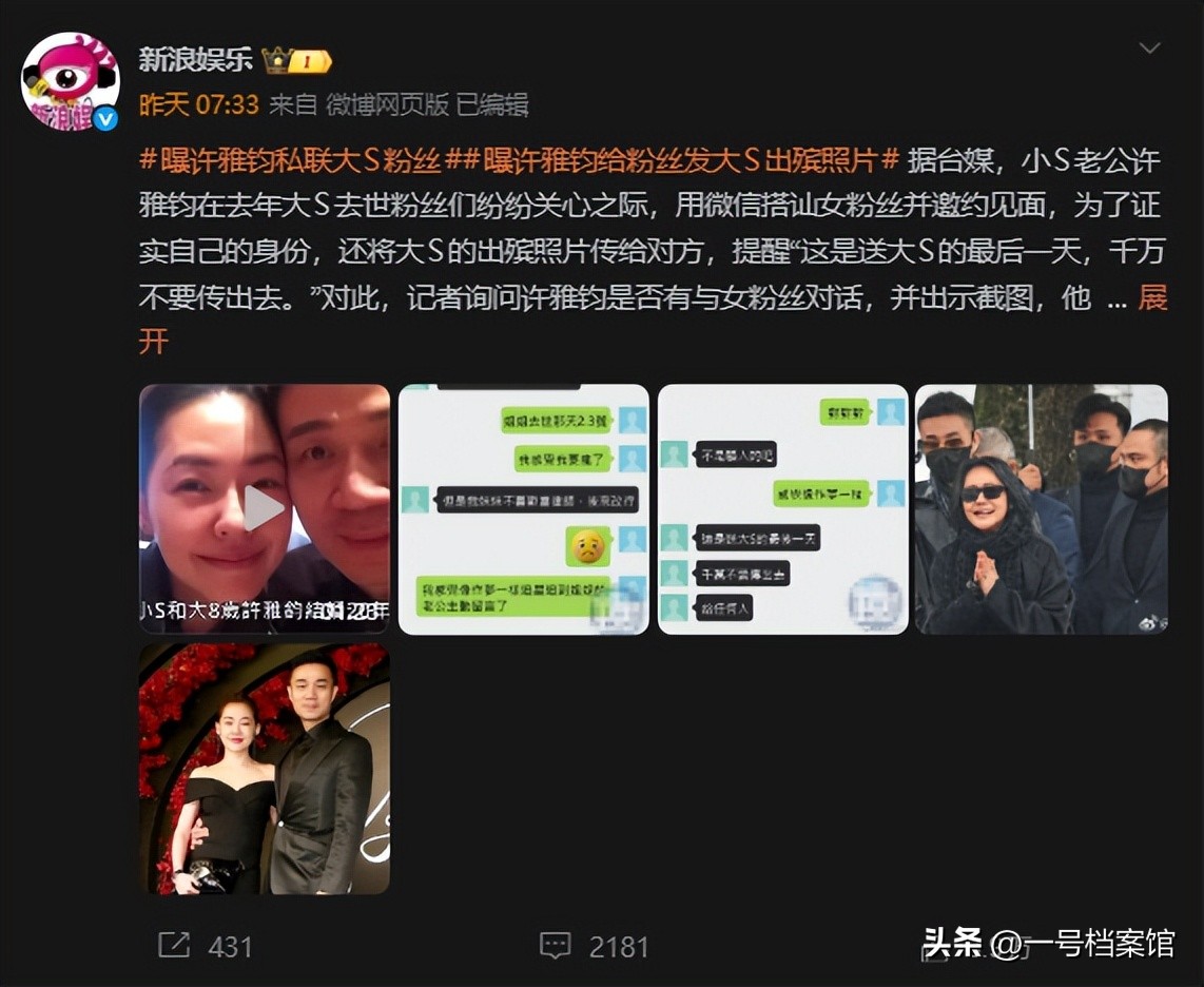 要知道前段时间许雅钧被曝出用大S出殡的照片搭讪女粉丝,最开始大家以为是普通的搭讪吗,结果这个女粉丝回应他们是有群聊的,小S助理也在群里。