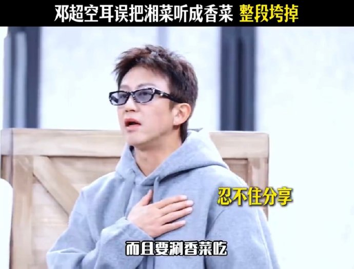 - 脑补惯性:作为知名“香菜爱好者”,邓超陈赫对相关词汇高度敏感,大脑自动完成“纠偏”;