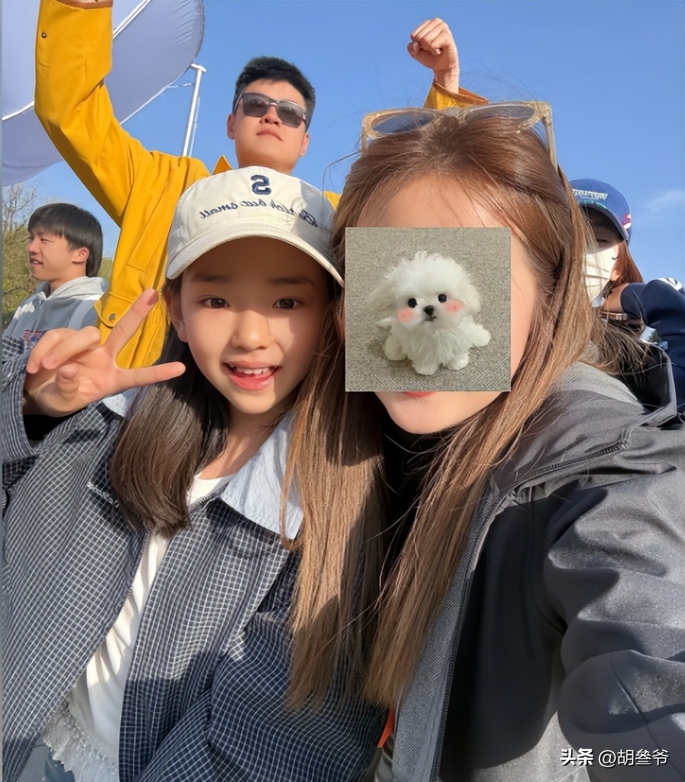 有路人认出小酒窝后上前请求合影,小姑娘特别大方,主动对着镜头比耶,笑容甜甜的。