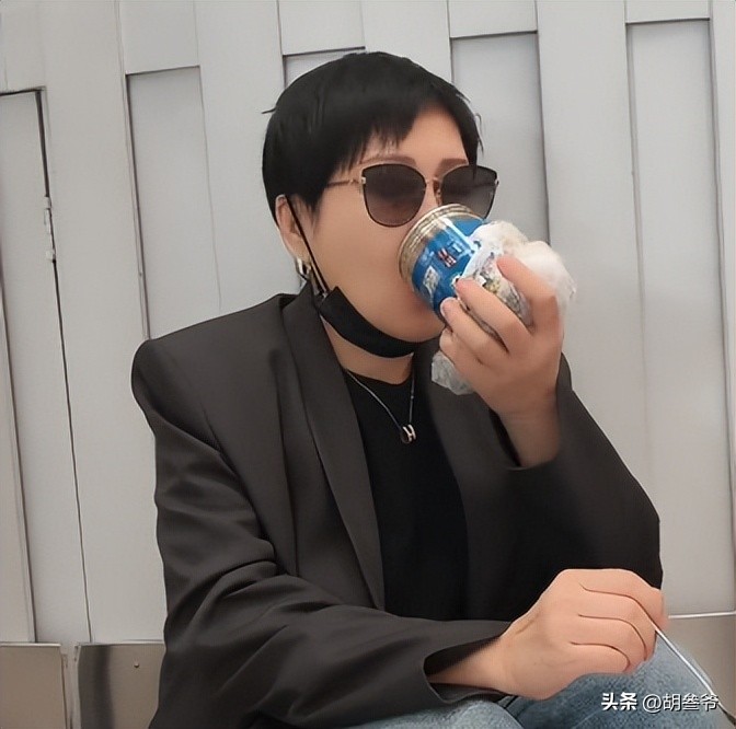 谁知道下一秒画风突变,她直接蜷缩在机场角落,手里端着一杯黄色的东西,大口往嘴里送。