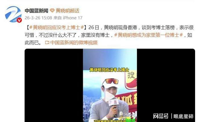 **黄晓明的“考博风波”:一场关于“光环”与“真实”的精神盛宴**,3月26日,黄晓明在香港的一次采访中,坦然回应了去年“明星考博”风波的结果,他坦言“很可惜没考上”,但语气平静,与“家里没有博士,想成为家里第一位博士”相辅相成,这番话,既道出了一个追求学术成就的朴素愿望,也在舆论场上划出了一道鲜明的“真实感”线。,时间倒退到2025年5月,黄晓明的名字出现在上海戏剧学院博士研究生复试名单上,研究方向是“艺术管理/戏剧策划”,这一消息在网络上引发热议,既有对他的支持,也有对他“明星特权”的质疑,然而到了6月,结果公布,他遗憾落榜,当时他没有选择回避,而是直言“明年再战”,这种“按规则出牌、坦然接受结果”的态度,在“明星特权”频繁被质疑的时代显得格外珍贵。,没有诉苦,没有找借口,黄晓明的表现恰恰展现了一种“普通人追梦”的积极信号,在这个人人都可以成为“成功人士”的时代,真正的努力与坚持往往被“光环”和“特权”所掩盖,黄晓明选择了用实际行动证明自己,他用47岁的年龄和普通考生的状态去竞争,这种“放下身段”的态度,堪称“真实感”的典范。,除了学业,黄晓明在事业上也展现出了极强的选择能力,他透露今年尚未接戏,理由是“没有好的角色和剧本,我宁可休息”,这与他选择考博的态度一脉相承,都是“不凑合,不将就”的态度,这种对职业道路的谨慎和对学术追求的专注,剥离了明星光环下的浮躁,展现出一种内在的成熟与自我认知。,从试图成为“家里第一个博士”的朴素愿望,到对剧本质量的严格要求,黄晓明的形象在舆论场上被重新定义,不是一个试图用光环换取捷径的明星,而是一个以实际行动诠释追求的普通人,他用自己的方式证明,真正的“人设”不在于光环与特权,而在于认准目标、按规矩努力、坦然面对得失。,在这个热衷造神也乐于看塌房的时代,黄晓明的“真实感”或许才是最难能可贵的“人设”,这种形象的转变,不仅让人感受到真实的努力与坚持,也为“普通人”的奋斗提供了一个值得学习的榜样。