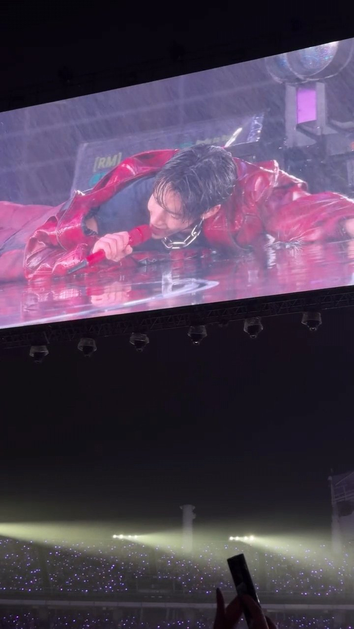 #雨中演唱会的金泰亨##金泰亨雨中演唱会游泳#玩得开心也要注意安全啊,看到打滑就害怕 BTS演唱会