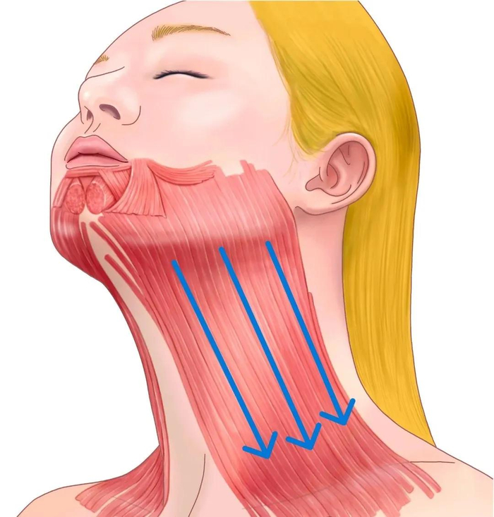 英伦大提升的重点在于放松颈阔肌,辅助放松降口角肌以优化轮廓。
