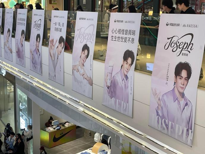 安热沙斥重金打造"痛楼营销":整栋建筑外立面循环播放曾舜晞宣传片,地下通道铺设广告,形成震撼的视觉符号。这种城市级地标式应援,将商业活动升级为公众事件,吸引大量路人驻足围观。