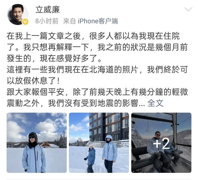 12月11日,立威廉在社交平台上晒出了自己与女儿的近照,立威廉的主要目的还是报平安,立威廉发文写道:“……跟大家报个平安……”