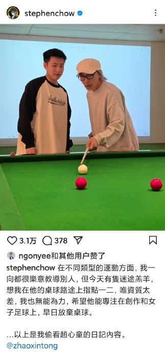 当赵心童与周星驰的球杆在2026年交错,两代"龙的传人"完成跨越时空的对话。从银幕上神话般的弧线球到现实中与冠军的谈笑风生,台球早已超越娱乐范畴,成为周星驰传递坚持信念与快乐哲学的媒介。正如网友所言:"他让斯诺克从赛场走进普通人的笑声里",这份情结因真实而鲜活,因坚持而传奇。