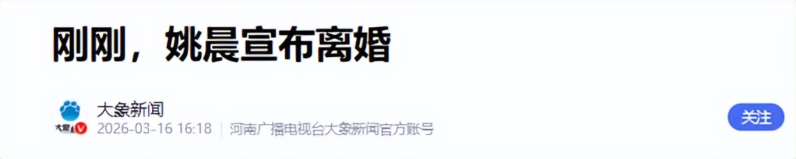 大象新闻2026-03-16刚刚,姚晨宣布离婚