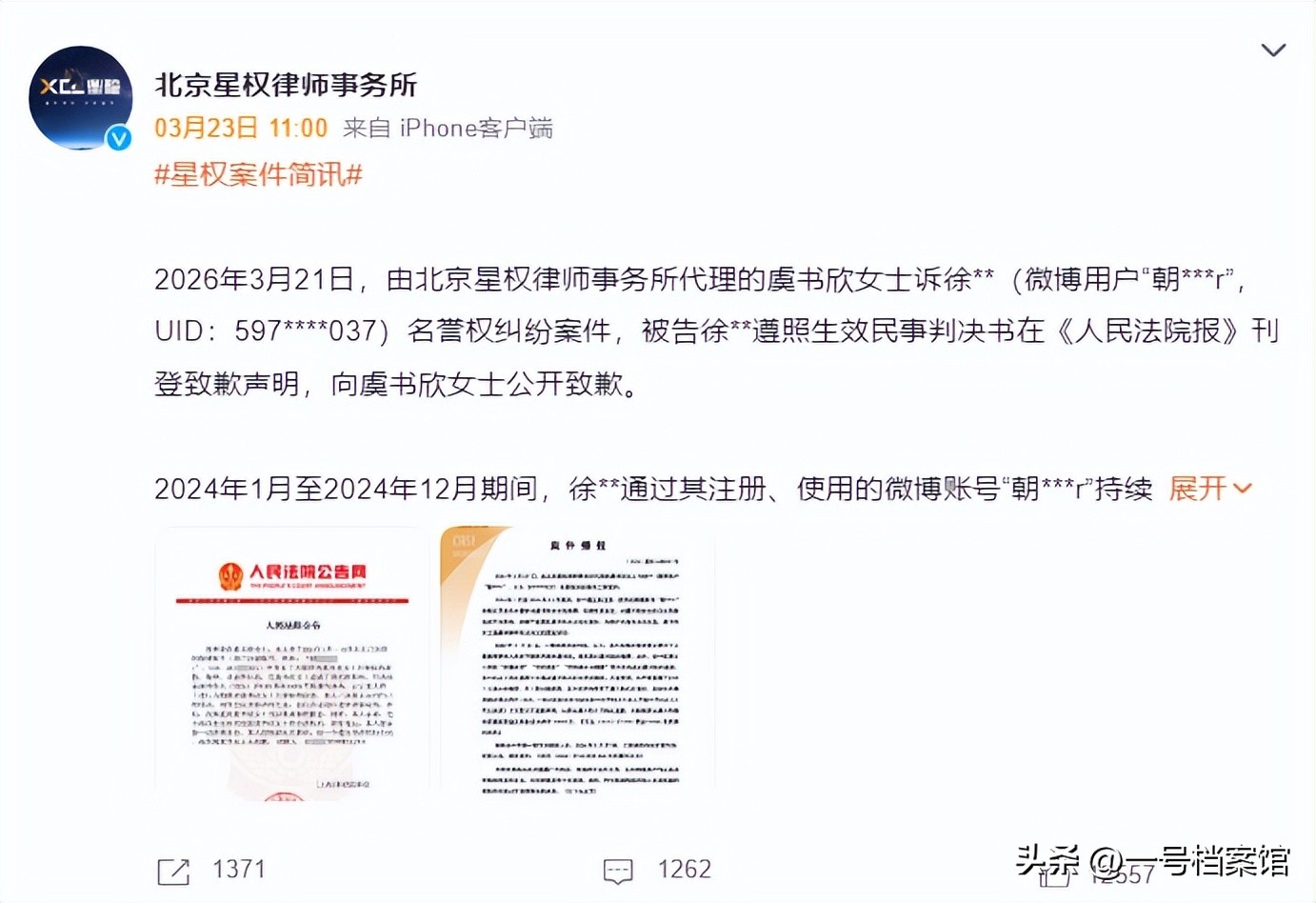 就在3月23日,虞书欣委托的律师事务所传出了好消息,发文称3月21日虞书欣女士胜诉了。