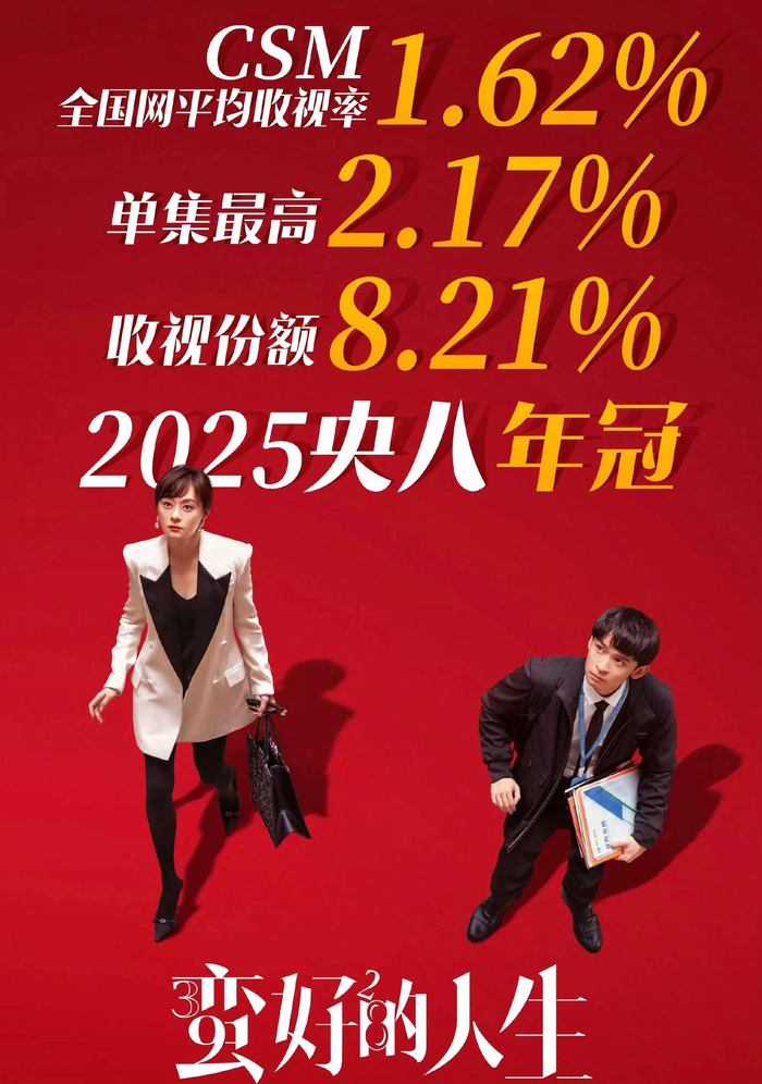 以及《沉默的荣耀》、《四喜》、《扫黑风暴》等都是口碑数据双丰收的好剧,但是让人万万没想到的是,排名第一的竟然孙俪的都市剧《蛮好的人生》,成为央视八套2025年的收视冠军作品。