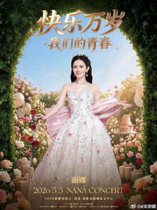 谢娜个人首场演唱会“快乐万岁·我们的青春”将于2026年5月5日19:00在成都金融城演艺中心璀璨启幕,这场承载青春情怀与跨界勇气的盛会,将用音乐与舞台点燃蓉城的夜晚。