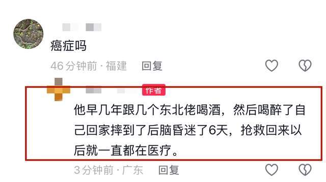 有知情人士透露,李道瑜之所以会住进医院,主要是因为醉酒导致。早两年的时候与几个东北人喝酒,醉酒后自己回家摔倒了后脑,昏迷6天,抢救回来之后就一直在治疗。