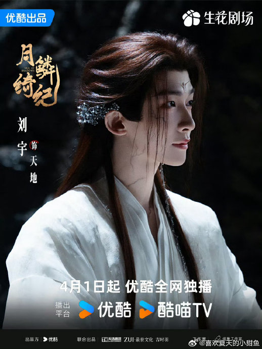 刘宇的清冷气质与破碎感演技放大了角色脆弱性。杀青戏中,他于河畔“万念俱灰”时迎向日出,眼神从绝望到微光的转变,被粉丝解读为“易碎的琉璃苏醒瞬间”。郭敬明更直言要“记录他二十几岁最帅的样子”,剧中深蓝纹面、仙袍加身的造型,进一步强化了非人感与精致感交织的“宝宝”特质。