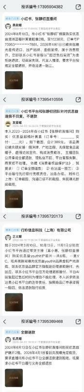 黑猫投诉显示,4月以来,已有多名网友投诉在张静初直播间购买优思益产品申请退款被拒。