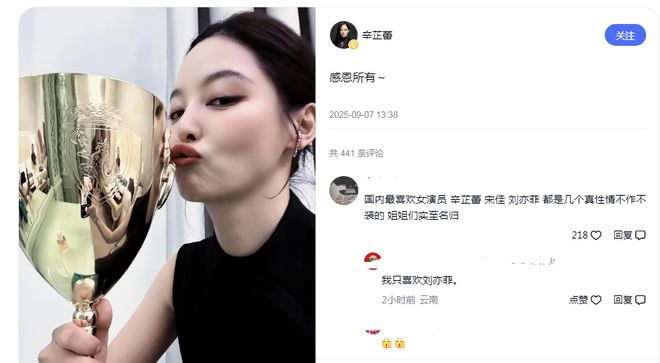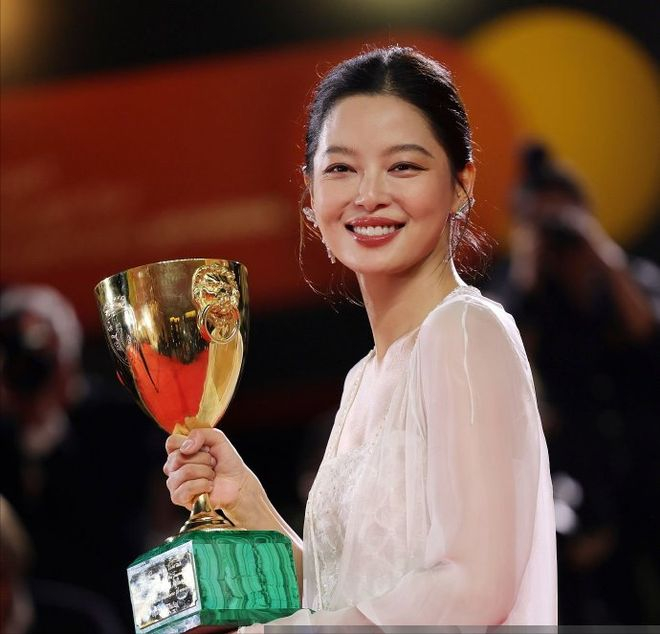 七年之后,辛芷蕾站在了国际舞台上,并且亲手举起了威尼斯国际电影节最佳女演员这座国际影后奖杯!