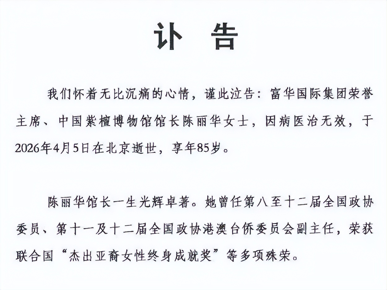 4月7日,富华国际集团发布讣告,正式公布了陈丽华离世的消息。