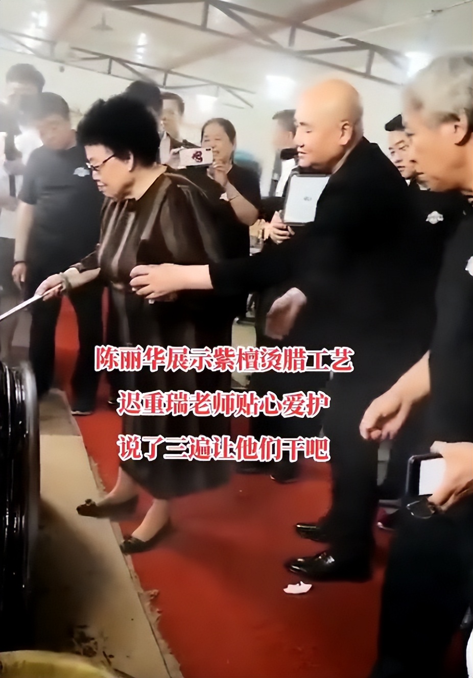 在向别人展示紫檀工艺时,陈丽华亲自上场。