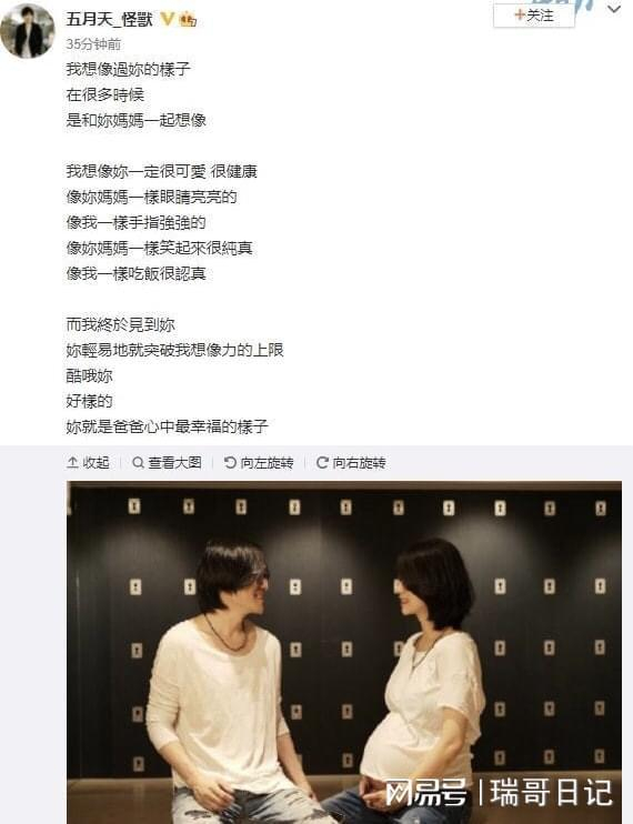 9月20号晚,五月天怪兽原名(温尚翊)在社交平台晒出孩子照片宣布当爸,宝宝是个小公主。他发文称:终于见到你,你轻易的就突破我想象力上线,酷哦你好样的,你就是爸爸心中最幸福的样子”。