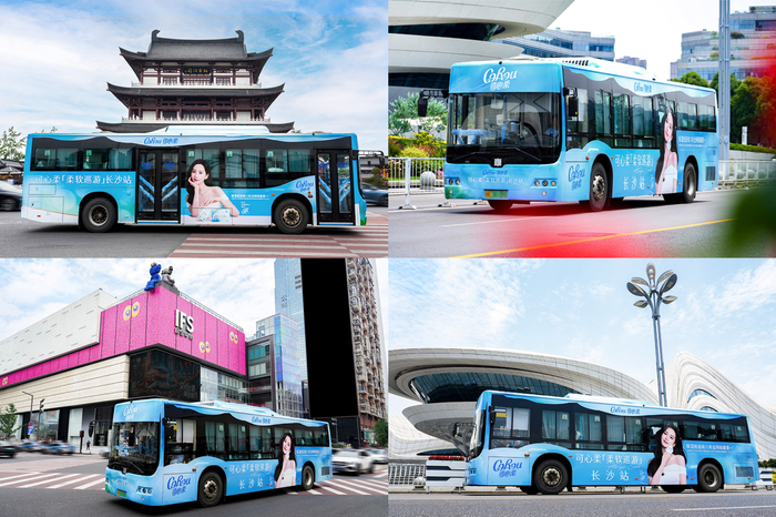 巡游路线集齐了橘子洲大桥、五一广场、海底世界等长沙热门地标,可心柔×刘诗诗「柔软巡游」定制巴士造型亮眼吸睛,让“可心柔蓝”成为了长沙街头一道特别的风景线,吸引了许多粉丝和市民的热情打卡,纷纷晒照各种“偶遇刘诗诗”的同框照片,也成为近日社交媒体上的热门话题。