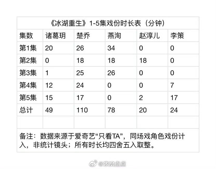 冰湖重生前五集戏份拉表:黄杨钿甜>张康乐>李昀锐 ……张萌说冰湖重生考虑过给黄杨钿甜的角色换演员、换脸等…李昀锐天选古人,张康乐基本功非常扎实。话说 李昀锐戏份这么少吗?戏份时长拉表,粉丝在向张萌维权!瓜主都出来为李昀锐说话了,同时放了影视瓜剑阁闻铃
