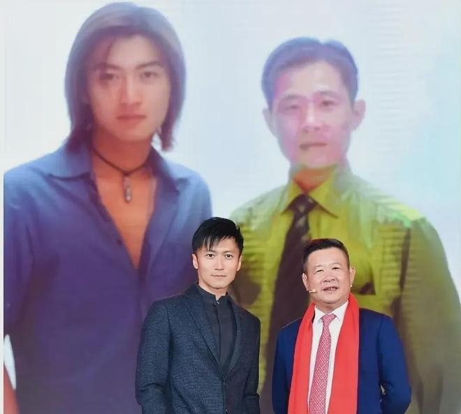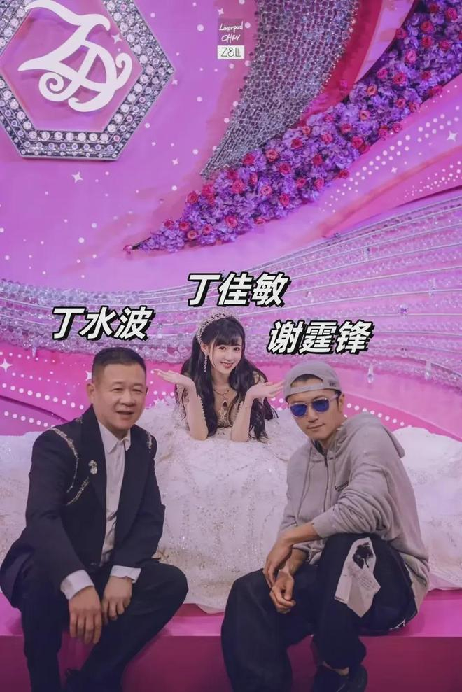 谢霆锋和丁水波一起坐在台子上,和女儿丁佳敏一起合影留念,举止非常亲切、随和、接地气,看不出一点明星大腕的架子,可见他是非常喜欢这个干女儿。