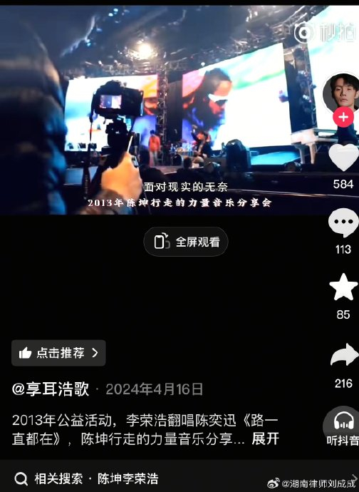 《路一直都在》原为陈奕迅2008年专辑《不想放手》收录曲目,早期版权由环球音乐代理。李荣浩被指演唱发生于2013年陈坤发起的“行走的力量”公益音乐会,当时授权责任主体应为环球音乐。
