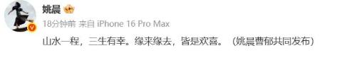 2025年3月16日,姚晨与曹郁官宣离婚,全程无撕扯,体面得让人意外。